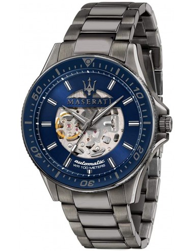 Montre pour homme Maserati Sfida R8823140001 Mouvement automatique à fond bleu et squelette.